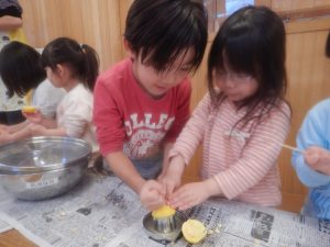 りす組では柚子を使って柚子ジャム作りをしました。